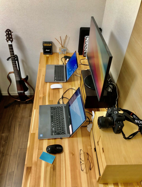 IKEAデスクの天板としてご活用いただき、モニターとノートパソコンを2台置いてもゆったりと使えるワークデスクになったとのこと、スタッフ一同とても嬉しく拝見いたしました。