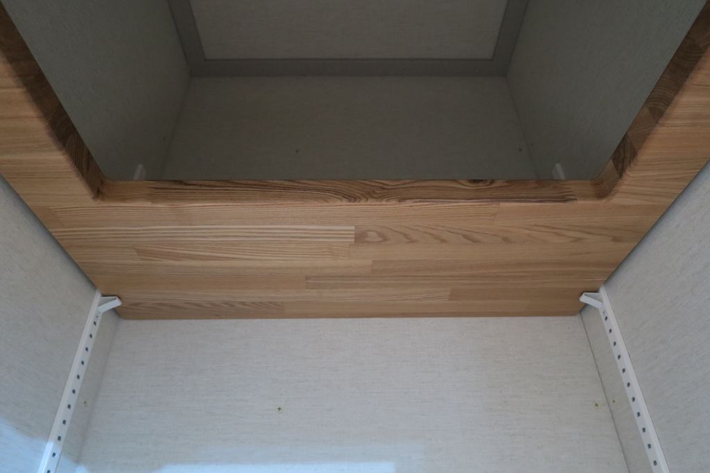 大工さんの造作でパントリーをキッチンに設けたのですが、他の設備の都合上一間取れなく特殊な寸法になってしまいました。